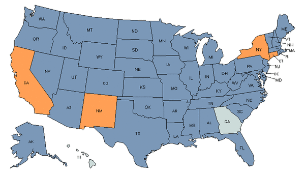 - Orange states have an above average share of this career in their workforce.