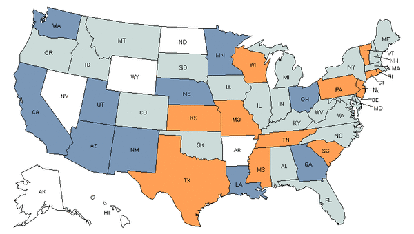 • Orange states have an above average share of this career in their workforce.