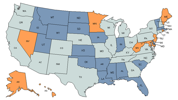 • Orange states have an above average share of this career in their workforce.