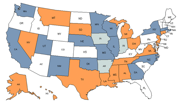 • Orange states have an above average share of this career in their workforce.