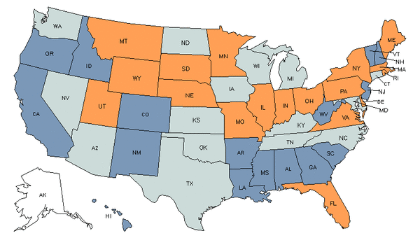 - Orange states have an above average share of this career in their workforce.