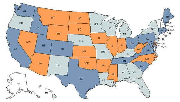 • Orange states have an above average share of this career in their workforce.
