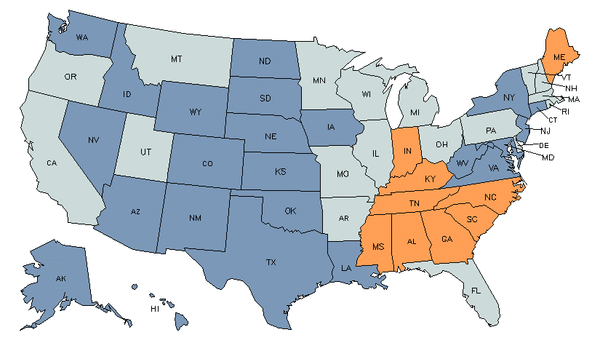 • Orange states have an above average share of this career in their workforce.