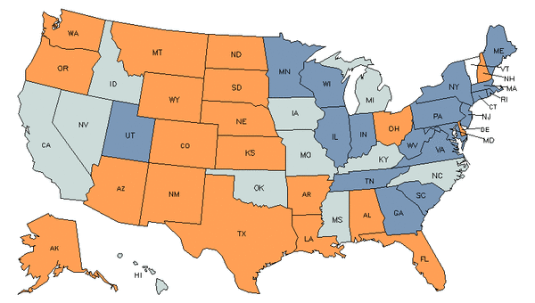 • Orange states have an above average share of this career in their workforce.