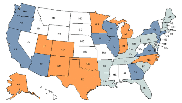 • Orange states have an above average share of this career in their workforce.