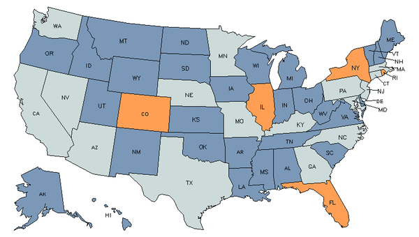 State Map for Securities, Commodities, & Financial Services Sales Agents