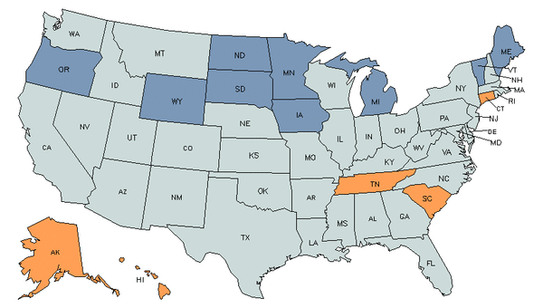 • Orange states have an above average share of this career in their workforce.